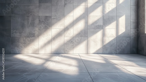 Bright Sunlight Casting Shadows on Modern Concrete Wall and Floor