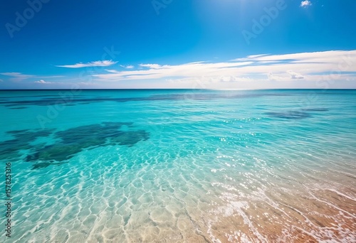 Bright sunlit beach with turquoise water and clear sky, pattern, texture