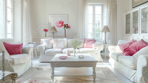Bright White Living Room with Bold Red Accents for Contemporary Home Design Inspiration