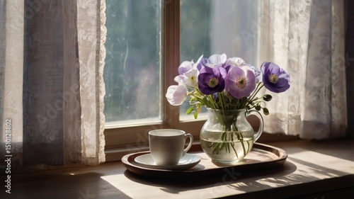 Bright Window with Sheer Curtains and Soft Sunlight