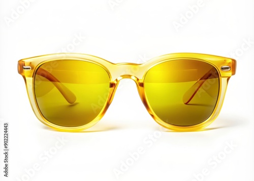 Bright yellow fashion sunglasses with vibrant yellow frames and lenses shine against a transparent background, exuding fun, warmth, and a trendy summer vibe.