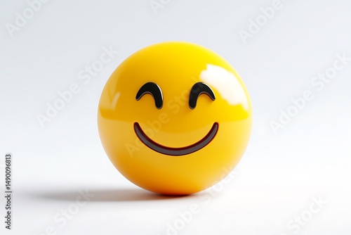 Bright yellow smiling emoji with a joyful expression, isolated on a solid white background.