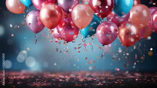 Brightly colored balloons on a blue background