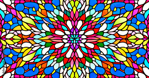 brightly colored symmetrical floral stained glass pattern background wallpaper