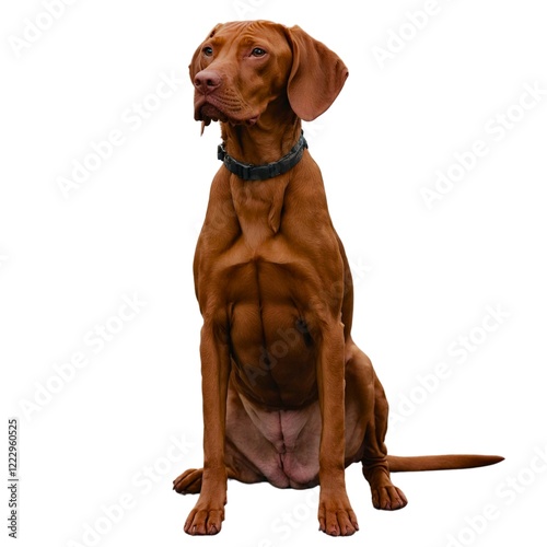 Broholmer dog isolated on white background looking to the camera. Merry Vizsla sitting on a white background, sleek build, joyful expression Generative AI. Portrait of an adorable magyar vizsla.