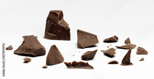 Broken Chunks or Pieces of Chocolate isolated on white background