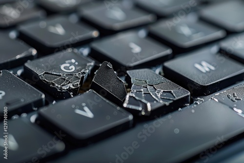 Broken computer keyboard key close-up technology detailed view raw feel