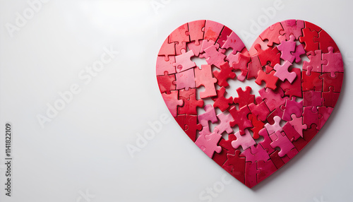 Broken Heart Puzzle Pieces, Red Pink - Minimalism