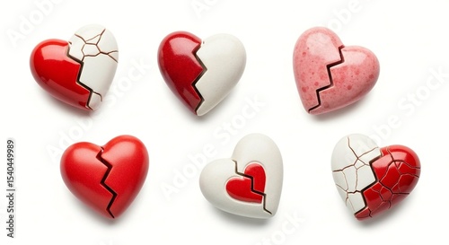 Broken hearts concept for valentine's day and relationship problems with heart break and divorce symbol