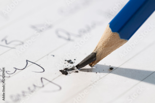 Broken pencil in exam, business meeting or interview