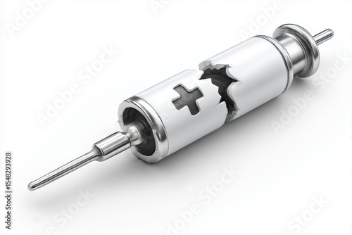 Broken syringe snapped in half reveals sharp edges and internal structure, raising safety concerns