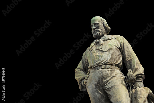 Bronze monument of the Italian general Giuseppe Garibaldi in the city of Pisa (Tuscany - Italy) - isolated on black background concept