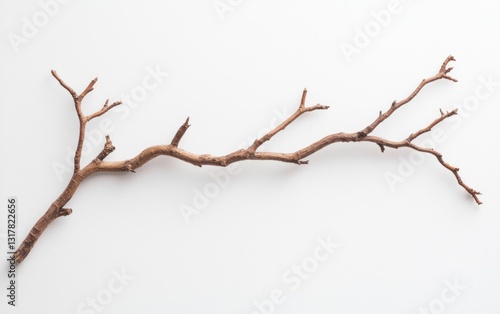 Brown Bare Branch on White Textured Background