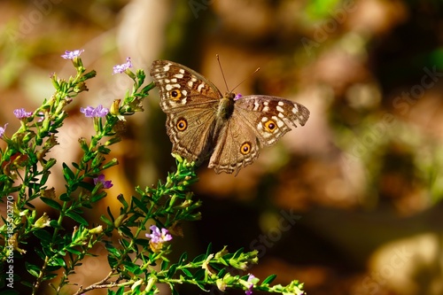 Brown butterfly on purple tiny flower