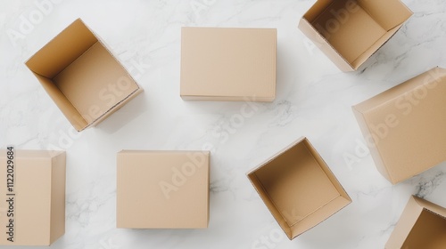 Brown cardboard boxes in open and sealed formats minimalistic layout ideal for logistics e-commerce and packaging designs