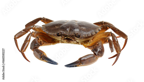 Brown crab with blue claws on transparent background