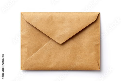 Brown craft envelope isolated on white background, generative ai