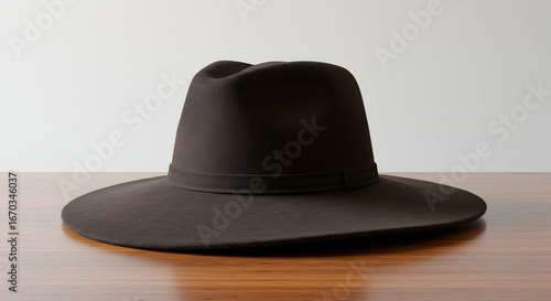 Brown Felt Hat Still Life on Wooden Surface in Studio Setting