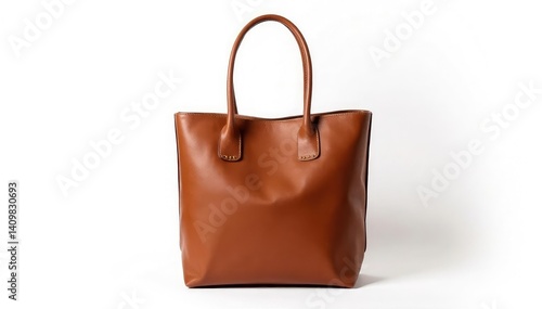 Brown leather tote bag, isolated on white background, studio, luxury bag, photography