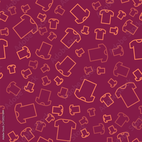 Brown line T-shirt icon isolated seamless pattern on red background. Vector