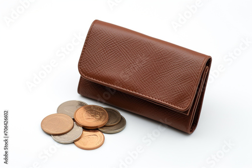 brown man's purse with money isolated on white background