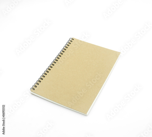 Brown notebook on white background