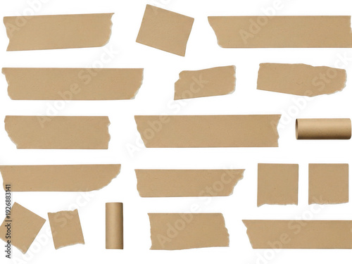 Brown paper tape pieces isolated on transparent background