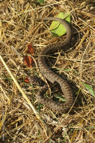 Brown snake on the grass, europe