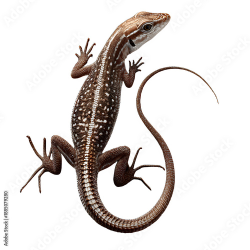 Brown Spotted Lizard Climbing on White Background, Isolated, Close-up
