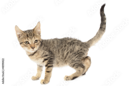 Brown Tabby Cat, Felis catus, Kitten, Isolated on White