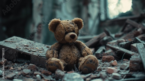 Brown Teddy Bear on Pile of Rubble