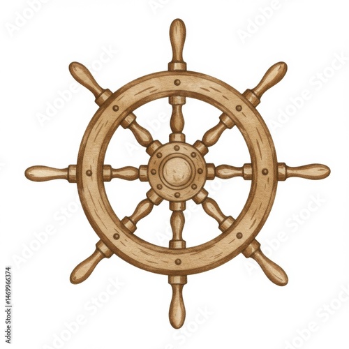 Brown Wooden Ship Wheel Nautical Vintage Design