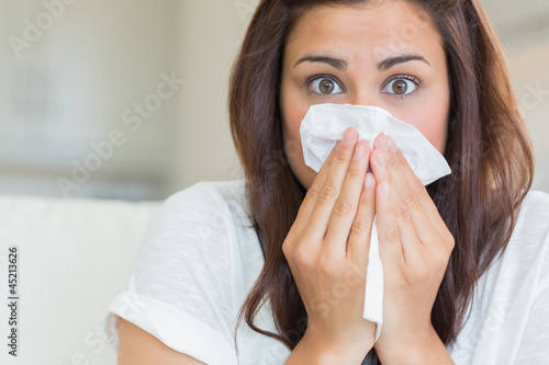 Brunette sneezing