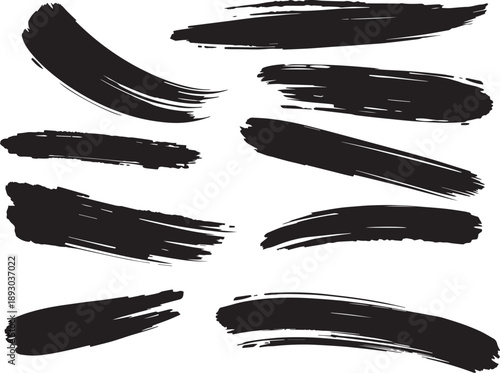 Brush set. Vector black paint brush spots, highlighter lines or felt-tip pen marker. Ink smudge abstract shape stains and smear set with texture