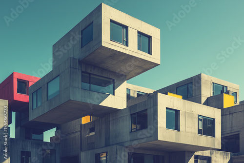 Brutalist architecture illustration mockups. Futuristic design