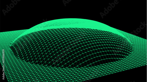 Bubble swelling as mountain. Hill, spherical protrusion. Hemisphere from dots..