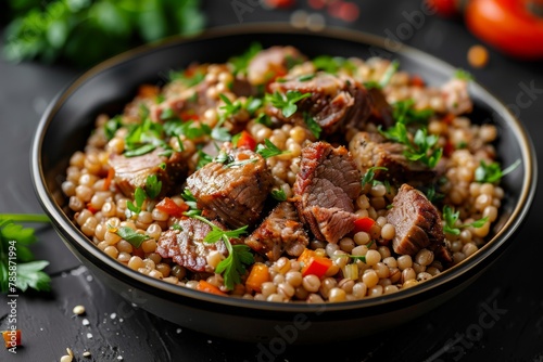 Buckwheat with meat - it's perfectly cooked fluffy buckwheat with juicy pieces of meat nearby. Ideal for a culinary magazine.
