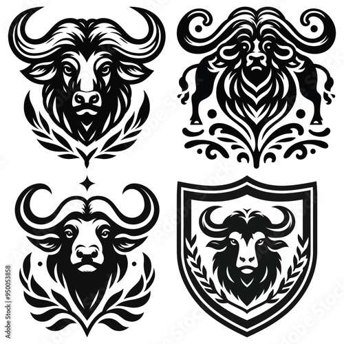Buffalo head emblem set vector illustration black and white isolated on white background