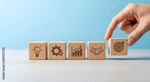 Building business success step-by-step with strategy, growth, partnership, and goal achievement