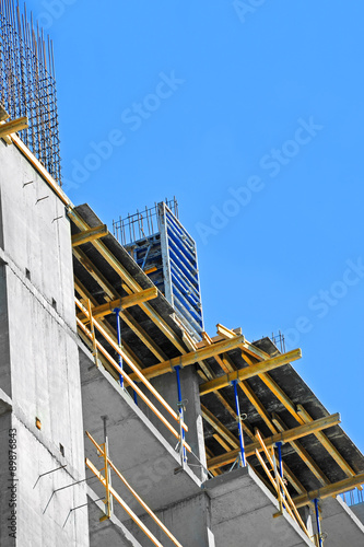 Building construction site work against blue sky