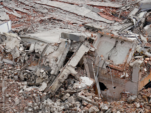 Building under demolition: reinforced concrete and wet debris