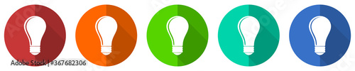 Bulb icon set, red, blue, green and orange flat design web buttons isolated on white background, vector illustration