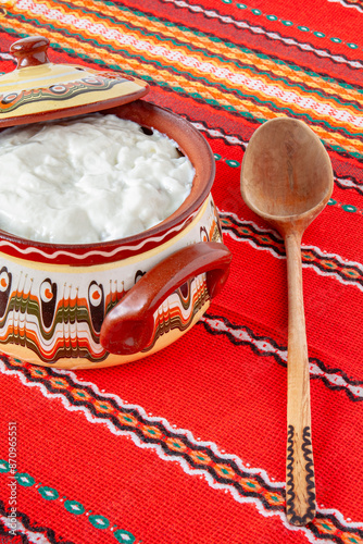 Bulgarian yogurt, in a ceramic bowl.