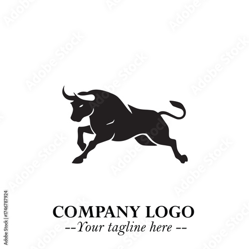 Bull Logo Symbol Black on White Background in Bold Powerful Minimalist Vector Design for Branding