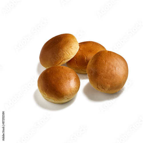 Bun isolated on white background. Bun clipping path. Top view. Selective focus and copy space. Junk food of Fast Food collection.