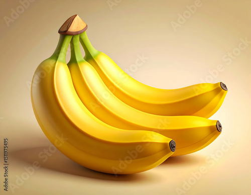 Bunch of Bananas: A photorealistic rendering of a vibrant bunch of ripe bananas, showcasing their smooth, yellow skin and appealing curvature in stunning detail.