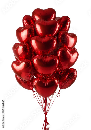 Bunch of red heart shaped balloons isolated on transparent background for love