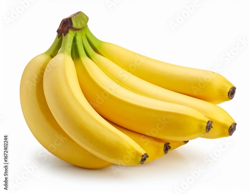 Bunch of ripe yellow bananas isolated on a clean white background, showcasing healthy tropical fruit.