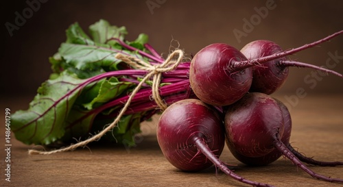 Bundle of Fresh Beetroots on Rustic Wooden Surface