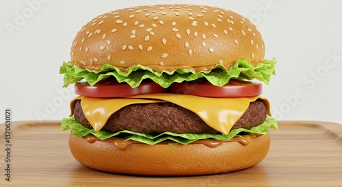 burger with clear white background with wooden placemat